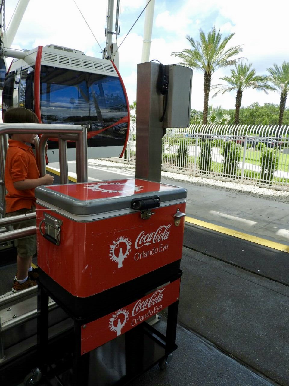 A Atração passou a ter o nome Coca-Cola, no ano passado, quando fez 1 ano de existência. As cabines passaram a ter o logo e ícones da marca. Quem reparou nas fotos, viu que existem algumas cabines que são vermelhas. Na verdade são quatro. Estas cabines oferecem um serviço VIP, com música, um cooler com refrigerantes gratuitos e bastões de selfie disponíveis, para que fotos incríveis sejam tiradas durante o passeio. Esse serviço VIP não pode ser adquirido, é pura sorte! As pessoas que estavam na nossa frente, pegaram a cabine vermelha. Ahhhh, quase fomos nós….