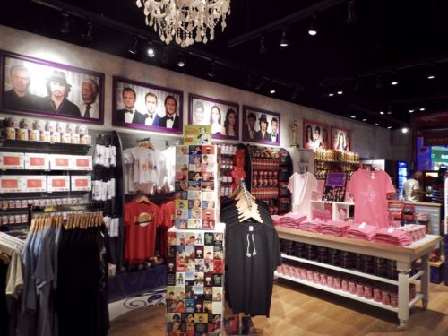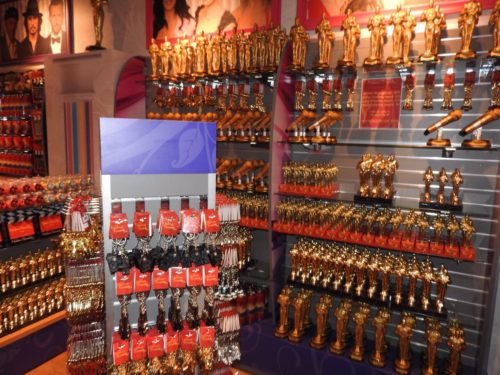 No final da visita o visitante passa pela loja de souvenirs do Museu. Tem artigos diversos como camisetas, chaveiros, copos, canecas e até estátuas do Oscar.