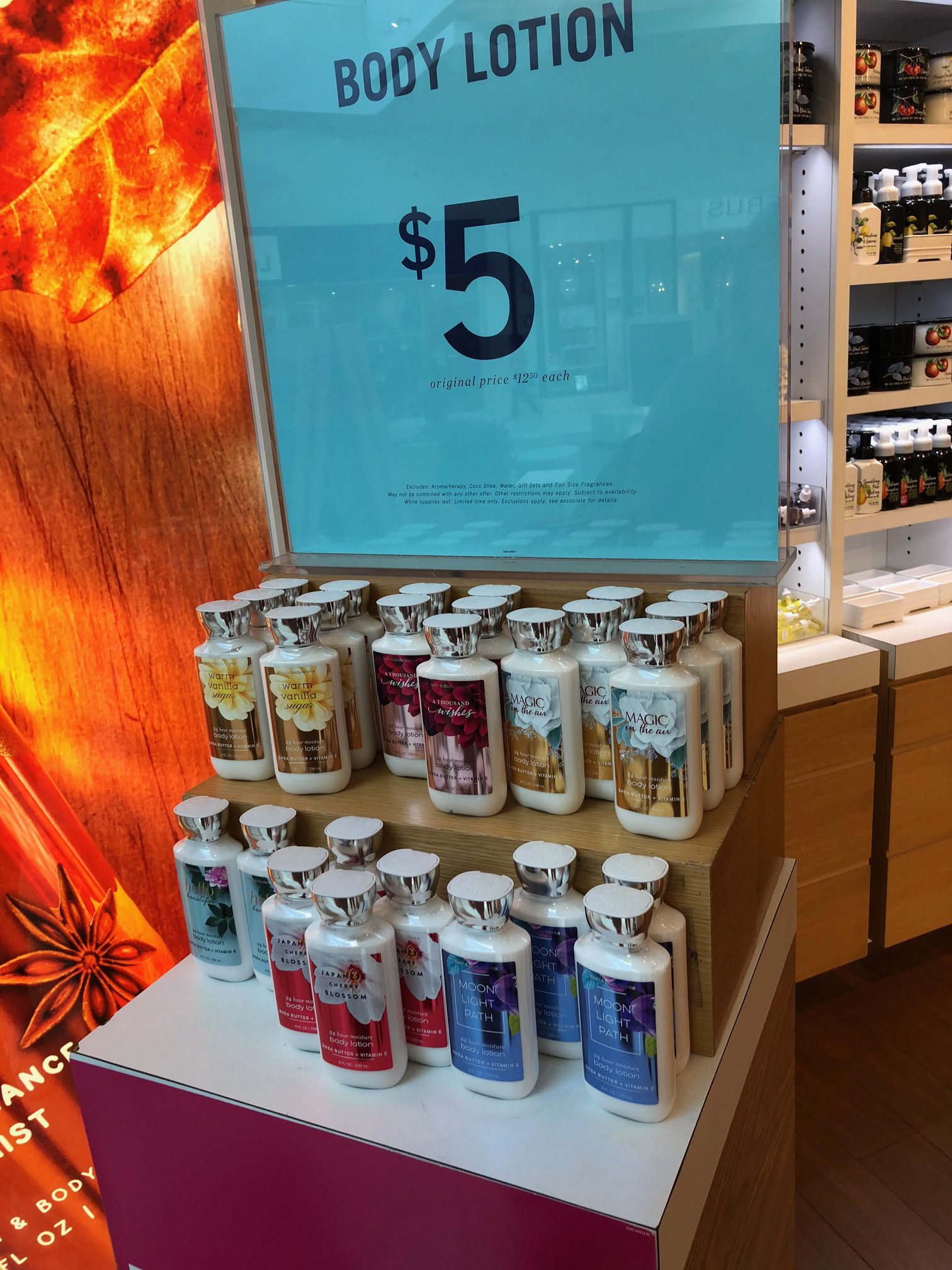 Conhecemos a Bath & Body Works, quando estivemos em Los Angeles há alguns anos atrás. Desde então, toda vez que vamos aos Estados Unidos, voltamos com vários itens desta marca. Como eu disse no início deste post, visitamos dois grandes outlets dias antes de ir ao The Florida Mall. Deixei de comprar meus hidratantes favoritos na Bath & Body Works no outlet, porque a loja fechou e não deu tempo. O preço no outlet era 12,90 dólares. Pois quando chegamos no The Florida Mall, todos os hidratantes estavam por 5 dólares. Uhuuuu!!!